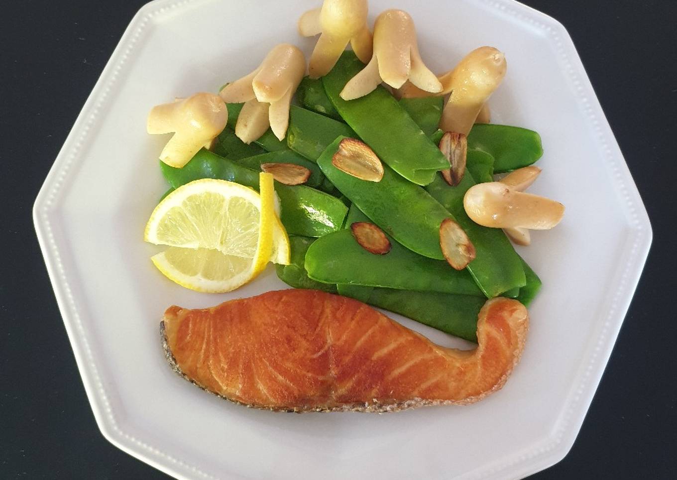 - Last is salmon so that it's still warm and crispy when we eat it. Pan-fried until golden and crisp.