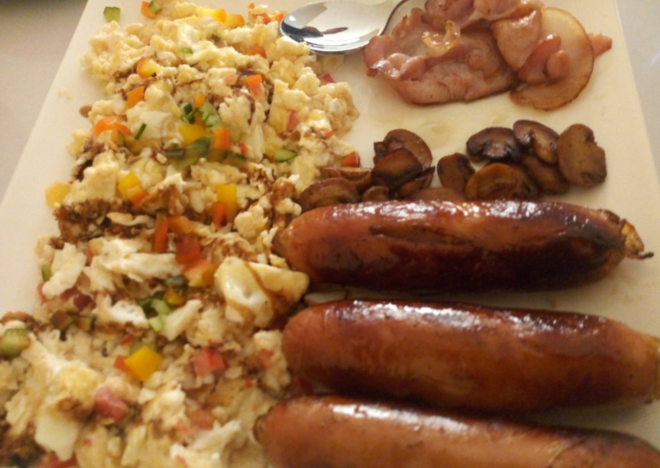 - Cook in a non stick the eggs and add mushrooms and tomatoes and onions