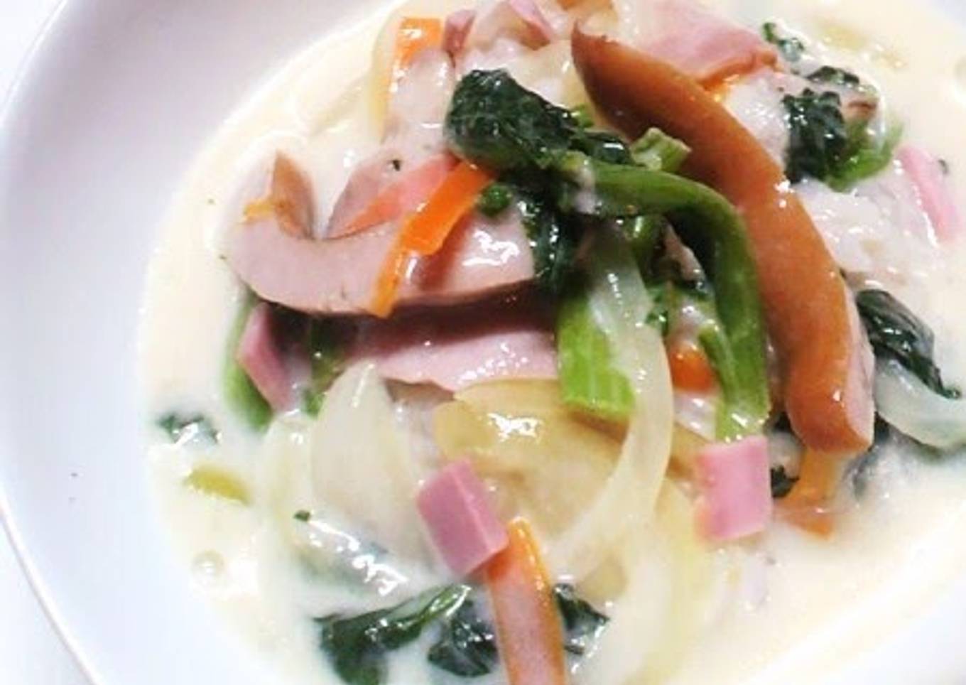 - When they become translucent, mix in the ☆ ingredient without burning. Add the water, and dissolve the flour.